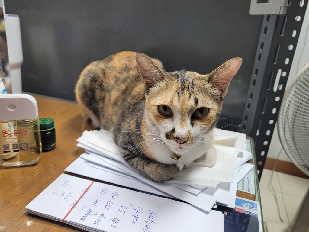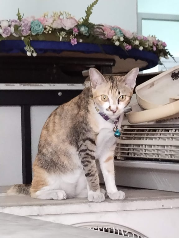รอยตำหนิ: ขาหน้าขวาลายสลิดขาหน้าซ้ายลายส้ม จมูกข้างขวามีจุดดำจางๆขี้เล่นขี้อ้อน เข้าหาคน เชื่องไม่ดุให้อุ้ม