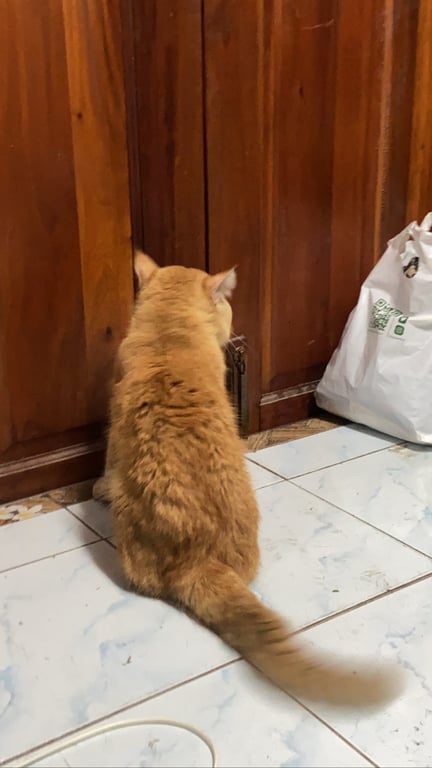 รอยตำหนิ: ตาสีเหลือง ขนตรงก้นเป็นสังกะตังน้องมีนิสัยเชื่อง แต่แพนิครถมาก