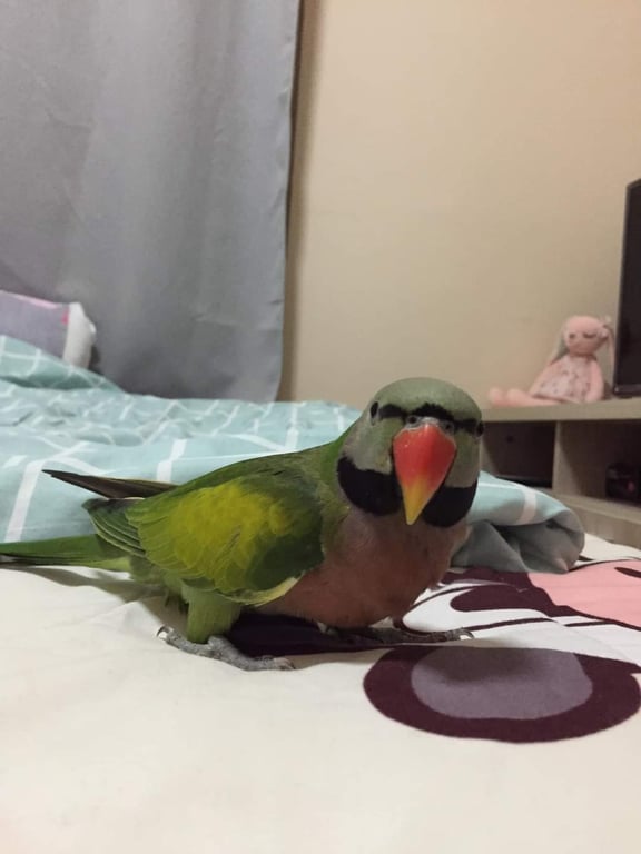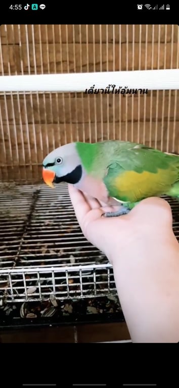 รอยตำหนิ: มีคาดสีดำที่คางและระหว่างตาสองข้าง **ไม่มีห่วงขานิสัยดุ ไม่ค่อยให้คนจับ บินไม่แข็ง