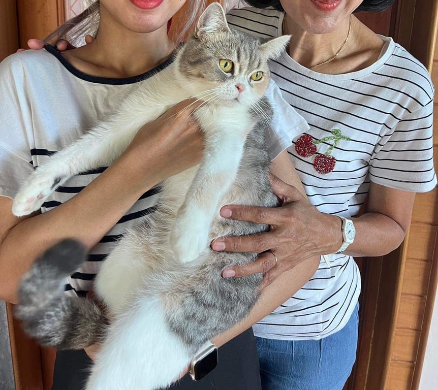 รอยตำหนิ: ตรงหัวตาจะมีรอยคล้ายๆคราบน้ำตา แต่ไม่ใช่คือสีขนของน้องตื่นคนและกลัวเสียงรอบข้าง