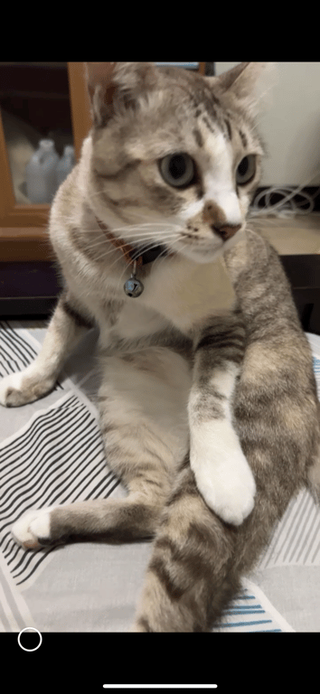 รอยตำหนิ: ตาฟ้าอมเขียวมิ้น, ตรงจมูกจะมีสีน้ำตาล 1 ข้าง,หางตรงยาว, ขาเหมือนใส่ถุงเท้าสีขาว, ฝ่าเท้ามีรอยดำกลัวเสียงดัง ชอบแอบ ไม่ค่อยส่งเสียงร้อง