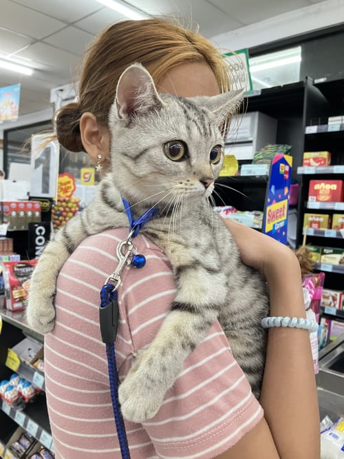 รอยตำหนิ: จมูกสีชมพู ขอบจมูกเลอะ ชอบทำตาไม่เท่ากัน ทีาหัวข้างขวามีจุดนึงที่ขนร่วงจนเห็นผิวหนังสีขาว6เดือน เป็นแมวขี้กลัว ชอบตื่น ไม่ยุ่งกับคนที่ตัวเองไม่คุ้น สู้ไม่เป็น เป็นแมวที่กินยาก ชอบนอนที่เย็นๆ ชอบแลบลิ้นออกมาเหมือนร้อนเกือบตลอดเวลา ชอบกินน้ำเย็นโดยเฉพาะน้ำแข็ง ชอบกินน้ำแดง ชอบกินไก่ ชอบกินกุ้ง ชอบเล่นเชือกสีแดง ชอบเล่นไม้ตกมวที่มีกระดิ่ง ชอบนั่งมอไซต์ออกไปเที่ยว แต่ไม่ชอบที่รถเยอะ