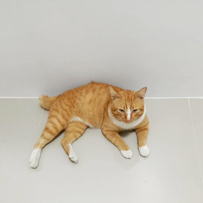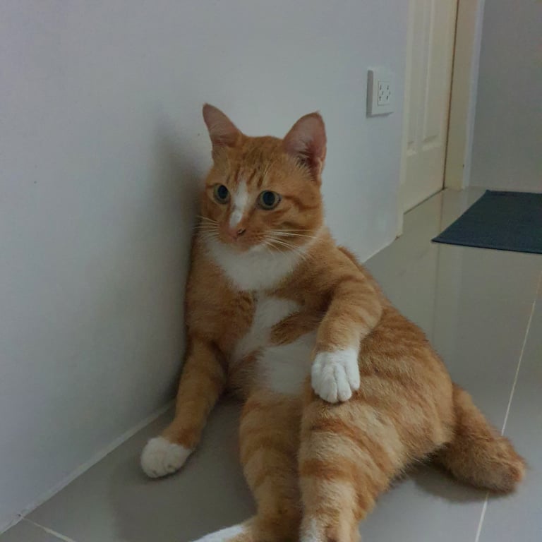 รอยตำหนิ: หางสั้น ขวักปลายหางเล็กน้อยตอนนี้น้องมีแผลบริเวณคอ นิสัยกลัวคน กลัวรถ