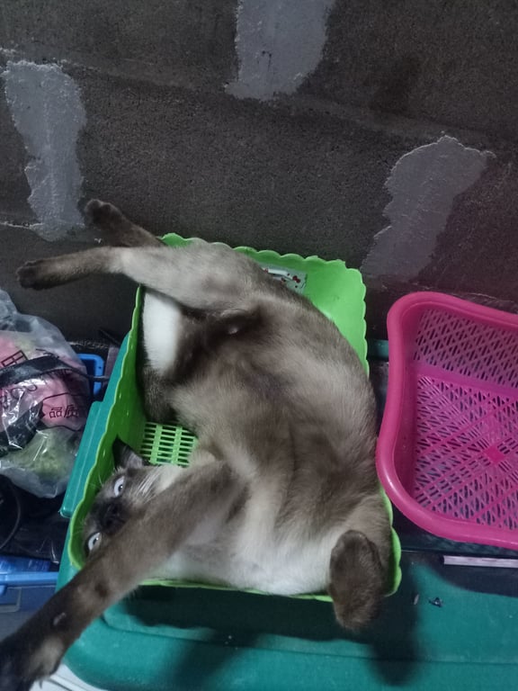 รอยตำหนิ: ปลายหางงอเหมือนตัวแอล(L) มีพุงน้อยย้อยๆกลัวเวลามีคนเข้าหาแต่ถ้าน้องเดินเข้าหาเราเองได้ไม่กลัว ไม่ชอบให้อุ้มแต่น้องชอบมาอยู่ใกล้ๆ เวลาเผลอน้องจะแอบงีบแบบเบามากเหมือนหมั่นเขี้ยวเรา ขี้สงสัย ชอบขยับหูไปทางที่มีเสียงไม่ค่อยชอบหันหัวตาม น้องจะลืมตาไม่ค่อยได้ถ้าเจอแสงแดด ส่วนมากจะนอนและกิน กินทีละนิดแต่กินทั้งวัน