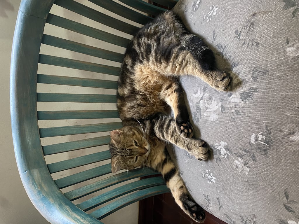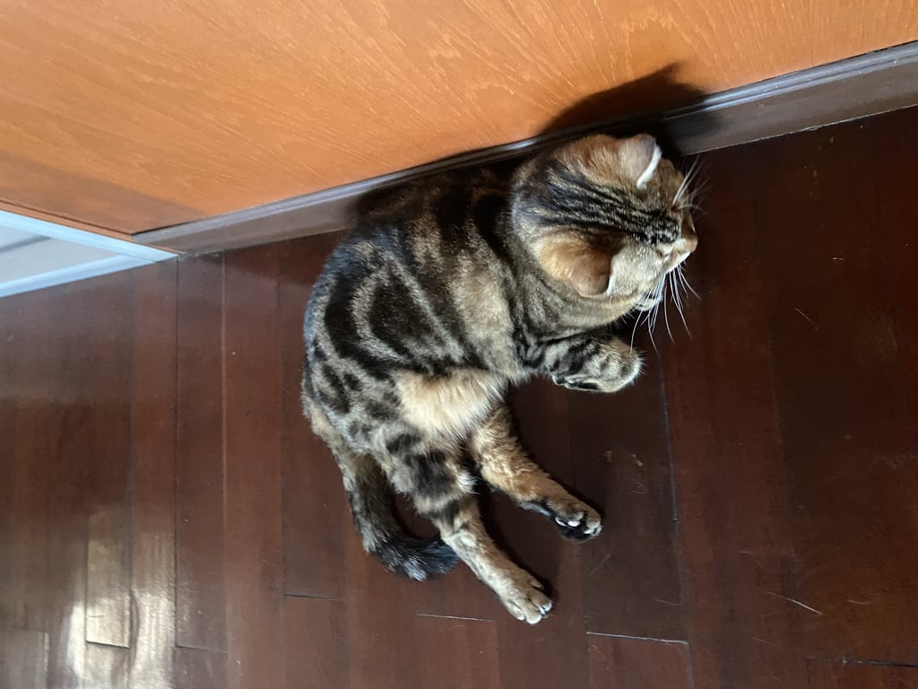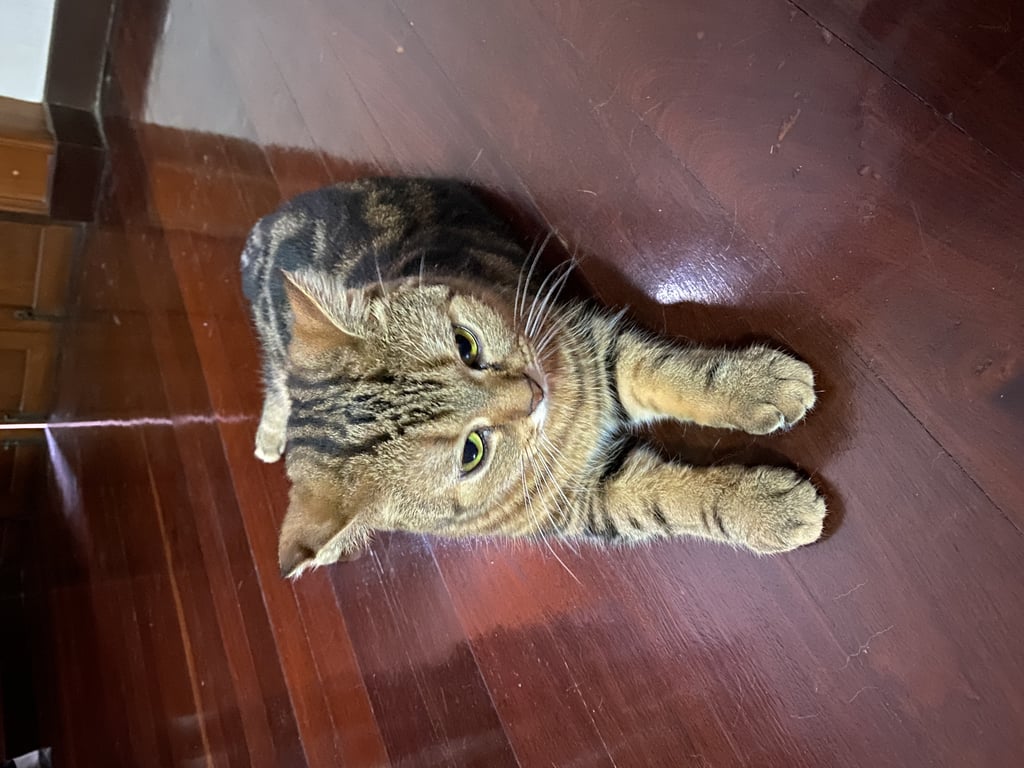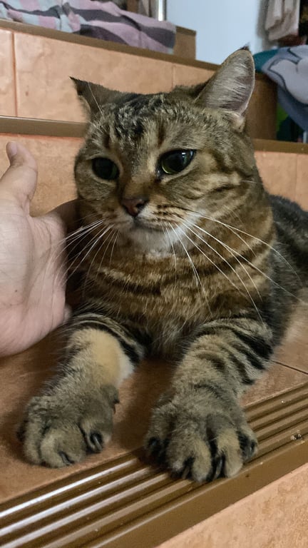 รอยตำหนิ: หูขวาบิ่นมีตำหนิไม่เหมือนหูซ้าย / ลายพร้อยเหมือนเสือ- ขนยาวฟู เพราะเป็นพันธุ์ผสมกับเปอร์เซีย - ตาสีดำเหลือง - ไม่ได้ใส่ปลอกคอ - หน้าจะขี้อ้อนตลอด - เสียงเล็กๆ เหมือนแมวเด็ก - ขี้กลัวคนแปลกหน้า
