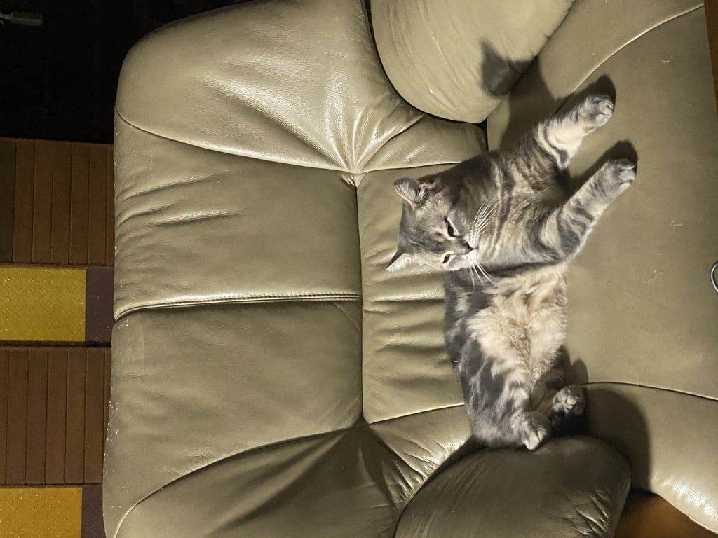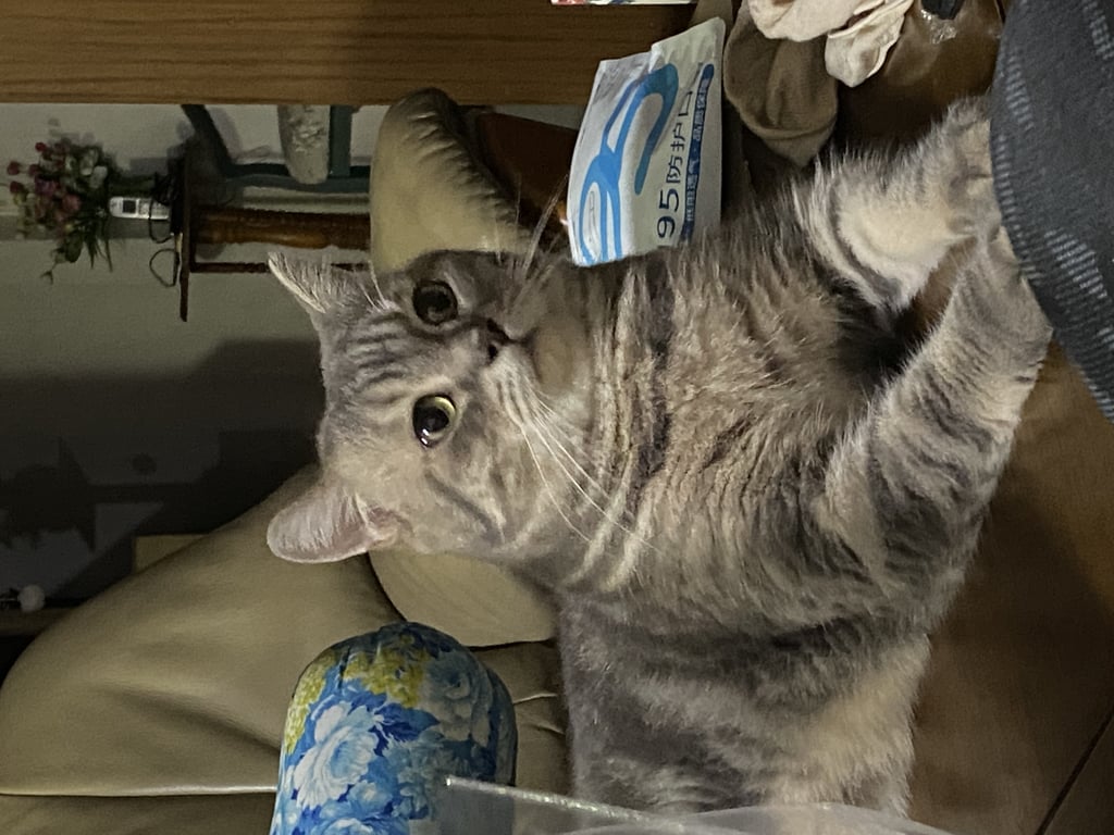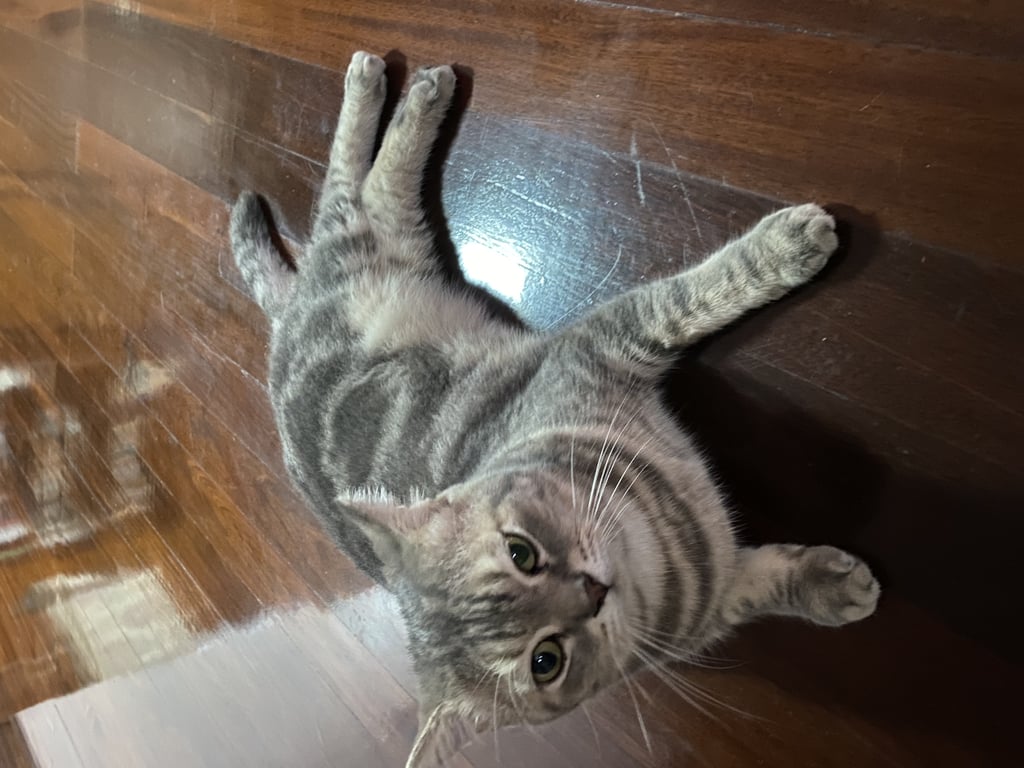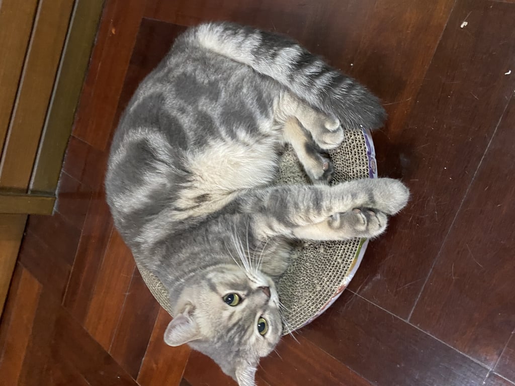 รอยตำหนิ: ขาหลังงอ 1 ข้าง เดินไม่เท่ากับขาอื่น- ขนยาวฟู เป็นพันธุ์ผสมกับเปอร์เซีย - ชอบออกไปสำรวจรอบข้าง ชอบสังเกตคน - ไม่ค่อยกลัวคน - ตัวใหญ่อ้วน แต่เสียงหวานเหมือนแมวเล็ก