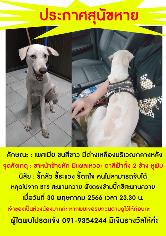 รอยตำหนิ: ขาหน้าด้านซ้ายหัก มีแผลขี้กลัว ขี้ระแวง