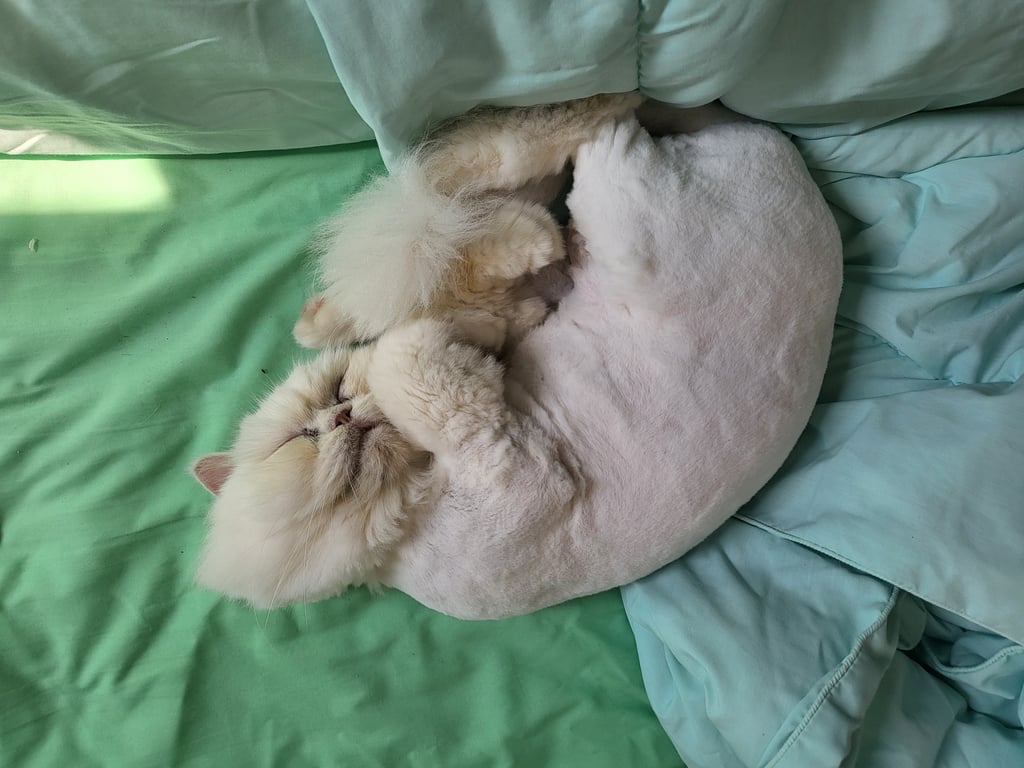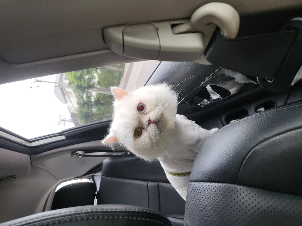 รอยตำหนิ: ตาสองสี สีเหลืองกับสีฟ้าเป็ยแมวเปอร์เซียสีขาวล้วน เพิ่งพาไปตัดขนสั้นมาไม่นานค่ะ
