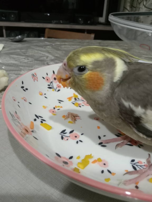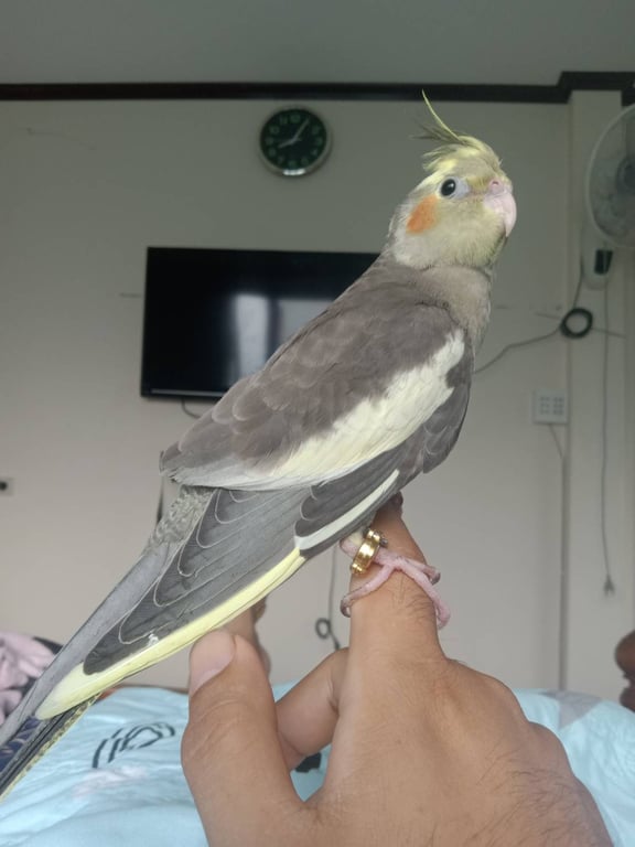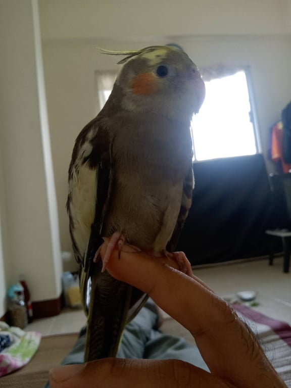 รอยตำหนิ: แก้มสีส้ม หัวสีเทาปนเหลืองชอบกินข้าวไข่ต้ม ชอบบินขึ้นหัว