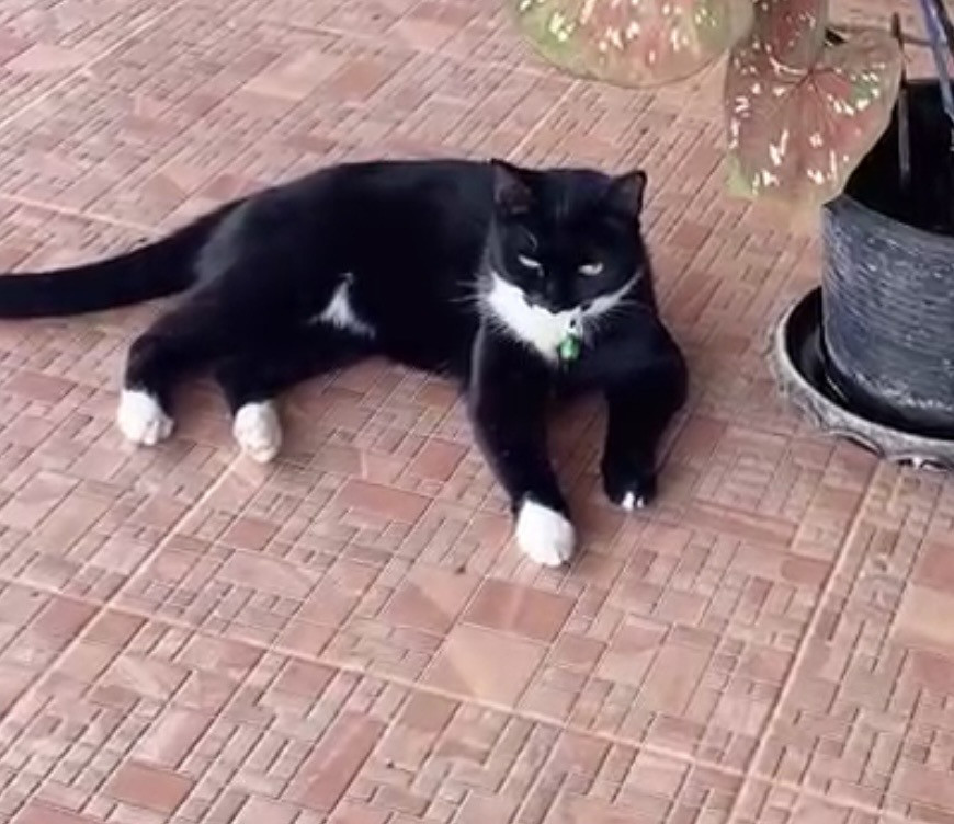 รอยตำหนิ: มีเท้าสีดำ เป็นเท้าหน้าด้านซ้าย แค่เท้าเดียว อีก3เท้าสีขาวเหมือนใส่ถุงเท้าปลอกคอสีส้ม ชอบขนมแมวเลีย ขี้อ้อน