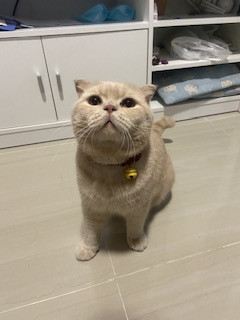 รอยตำหนิ: ตาสีเหลือง อมสีส้มใจดี นอนเก่ง เป็นมิตรกับคน ขอมือได้