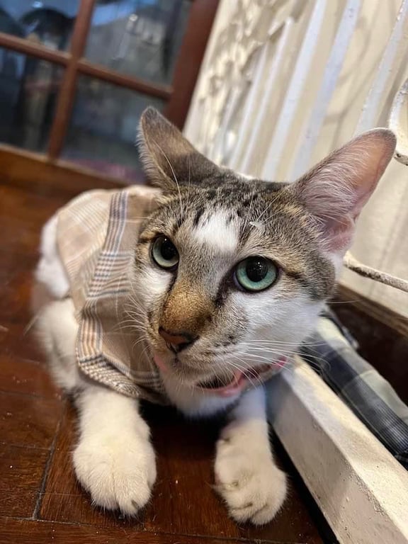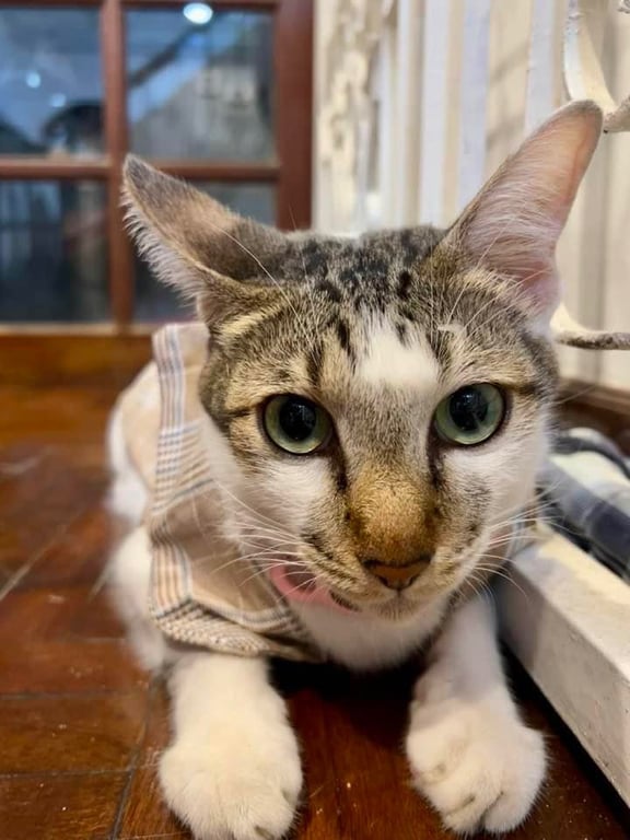 สี: ตัวสูง ผอม ลายขาวปนเสือ หน้าเสือ หางเสือยาว