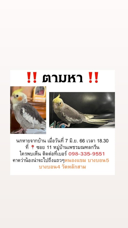 สี: หัวเหลือง แก้มส้ม ตัวสีเทา