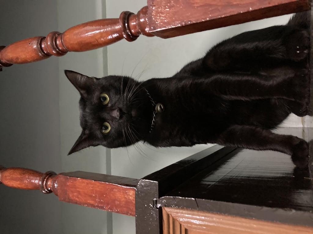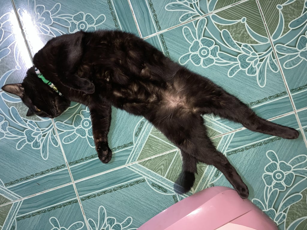 รอยตำหนิ: หางยาว ปลายหางขอด สีดำทั้งตัว รูปร่างปราดเปรียว ไม่อ้วนน้องมีสีขนดำทั้งตัว ไม่มีขนสีอื่นแทรก พุงขาว อายุ 8 ปี ยังไม่ได้ทำหมัน ตัวใหญ่ รูปร่างปราดเปรียวไม่อ้วน