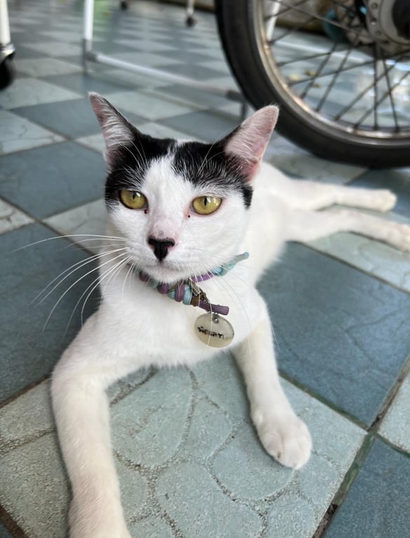 รอยตำหนิ: น้ำหนักประมาณ 4 กิโล ตรงหัวมีสีดำเป็นครึ่งวงกลมตรงหู2ข้าง