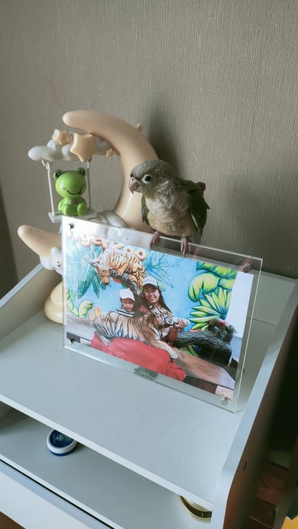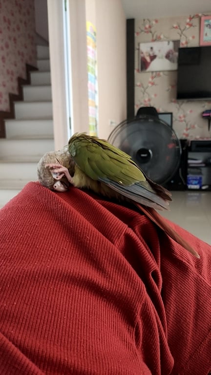 รอยตำหนิ: ตรงปากข้างขวา มีสีดำน้องเชื่องมาก ติดคน เรียกชื่อน้องจะบินมาหาคนเลย
