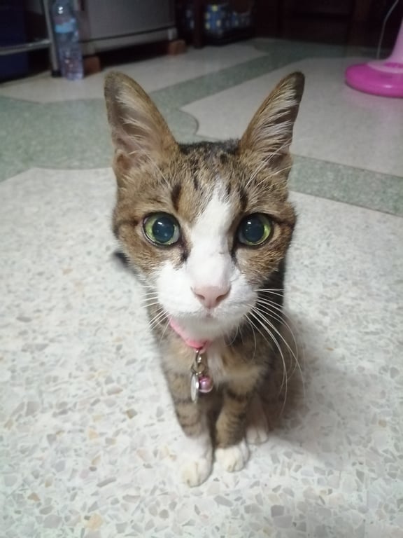 รอยตำหนิ: ตัวผอม หน้าขาว เท้าขาวตัวผอมกว่าในรูปมาก ใส่ปลอกคอสีเหลือง มีป้ายชื่อ