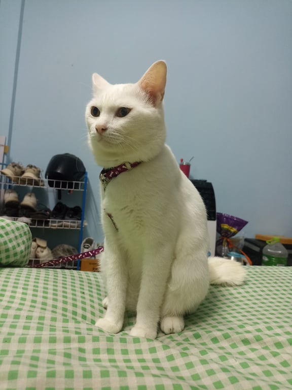 รอยตำหนิ: หางม้วนน้องขี้กลัว..กลัวคนแปลกหน้าเรียบร้อยไม่ร้องไม่ช่างคุย..เจอคนหรือได้ยินเสียงรถเสียงดังน้องจะวิ่งหนี