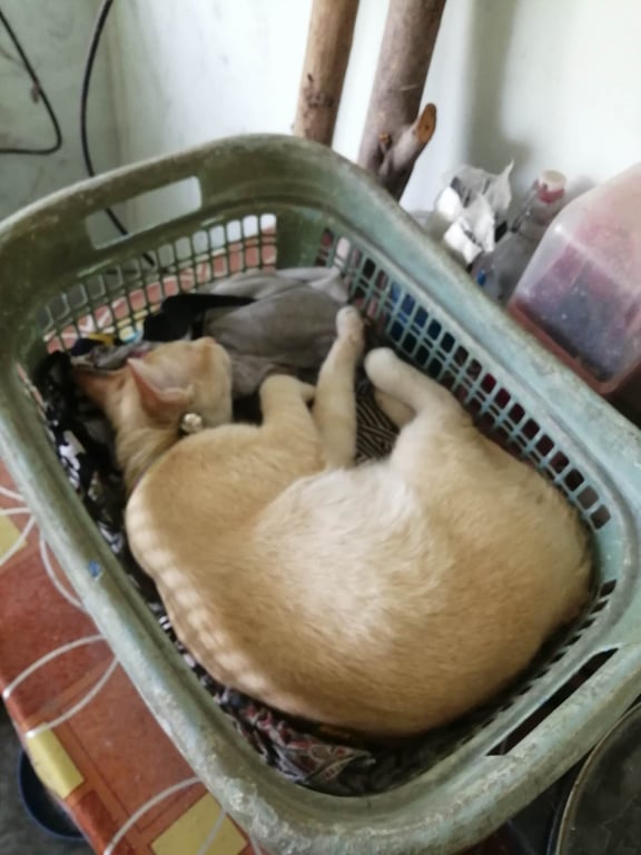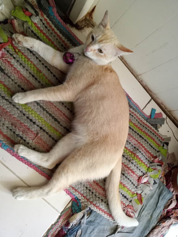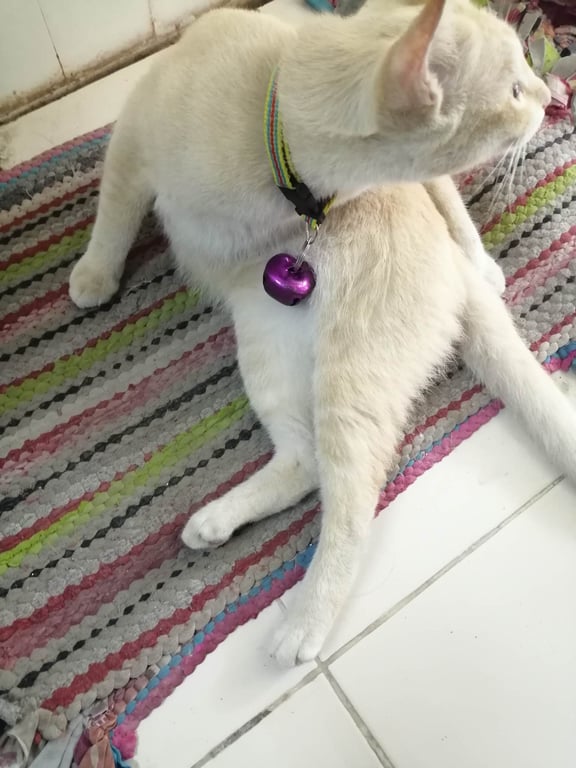 รอยตำหนิ: ขาเปนลายสลิดสีเหลืองแมวมีปลอกคอสีเหลือง