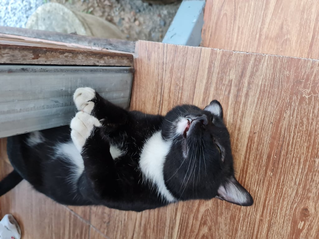 สี: สีดำ คอสีขาว ท้องสีขาว ใส่ถุงเท้าขาวสี่ข้าง
