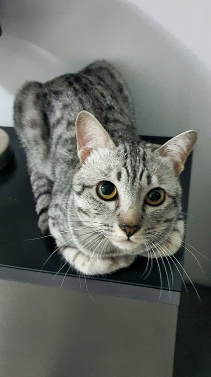 รอยตำหนิ: ลายสลิด สีขาวดำ ใส่ปลอกคอสีดำขี้กลัว