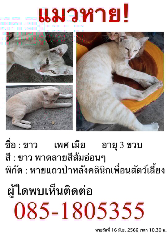 สี: สีขาว มีพาดลายสีส้มอ่อน