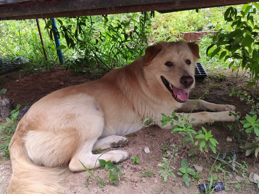 รอยตำหนิ: ไม่มี⚠️โกเด้นท์ผสมสุนัขไทย ⚠️สีน้ำตาลอ่อน ไข่ๆ ทองๆ ⚠️หางสวยเป็นพวง ⚠️หน้ายาว หูพับทั้ง 2 ข้าง แต่อีกข้าง 1 จะลู่ไปข้างหลังได้ ⚠️นิสัยชอบส่งเสียงพูดคุย ขี้เล่น ชอบเอาตัวมาถูขา ชอบวิ่งไล่รถ ชอบเห่าคนแปลกหน้า