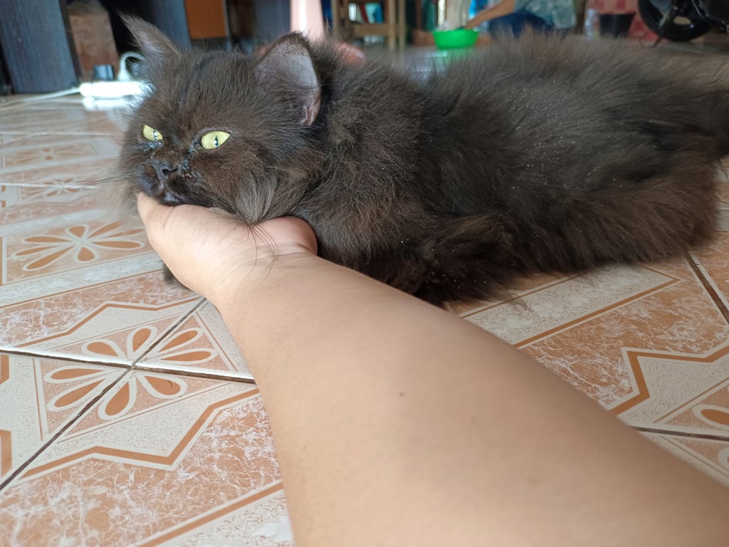 รอยตำหนิ: ปลายหางหักขึ้น ขนหยึกๆ ตาโตๆ กลม ปากเล็ก ขนาดตัวอ้วนขนฟูน้องขี้อ้อน เชื่องมากๆ เวลาร้องไม่มีเสียง น้องร้องไม่ค่อยเป็น
