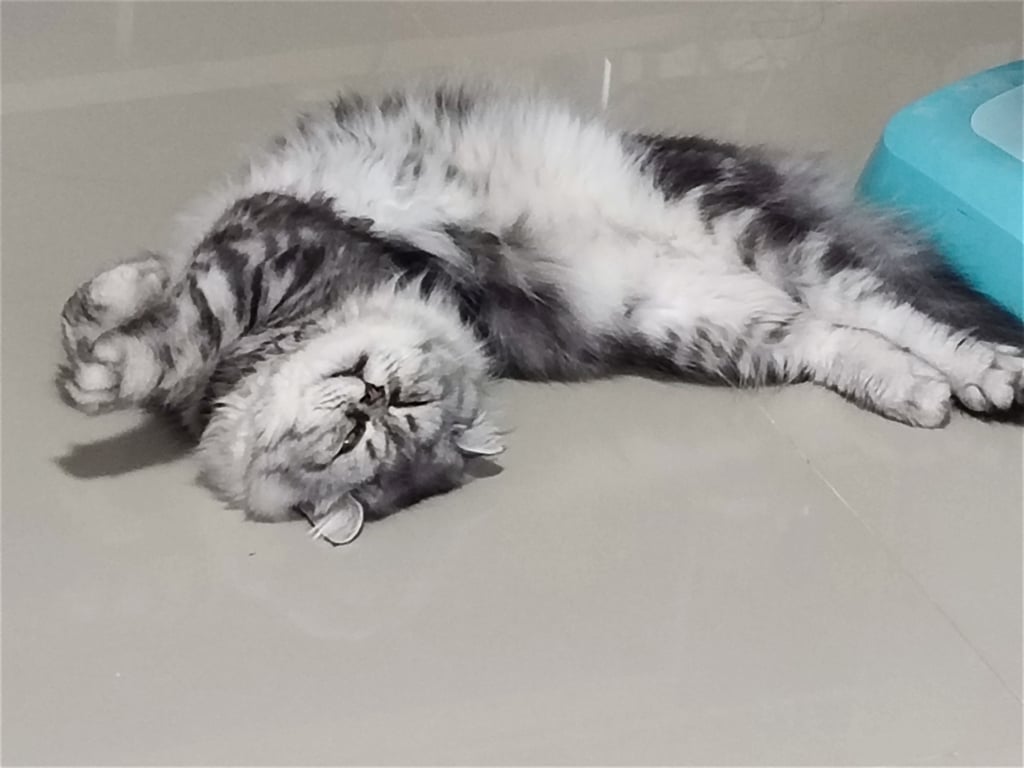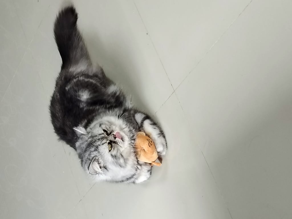 รอยตำหนิ: ไม่มีปลอกคอ ตัวลายสีเทาดำน่องขี้ร้อน กินแต่อาหารเม็ดเป็น ตัวลายเทา ขาว ดำ
