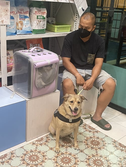 รอยตำหนิ: เล็บดำ มีคราบน้ำตาที่ตาขวา มีแผลด้านๆที่ข้อศอกหน้าตัวกลมเป็นถังแก๊ส / กลัวทุกอย่าง / ขี้ตกใจ / ชอบทำตัวลุกลน / กรนเสียงดัง / ชอบเห่าคนส่งของ