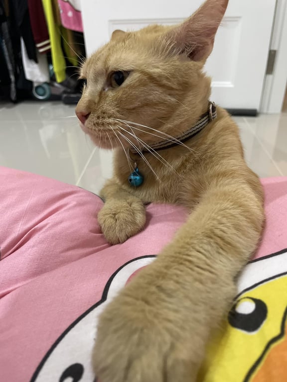 รอยตำหนิ: ใต้เท้าด้านหน้ามีจุดสีดำกลัวคน มีปลอกคอ กระดิ่งสีน้ำเงิน