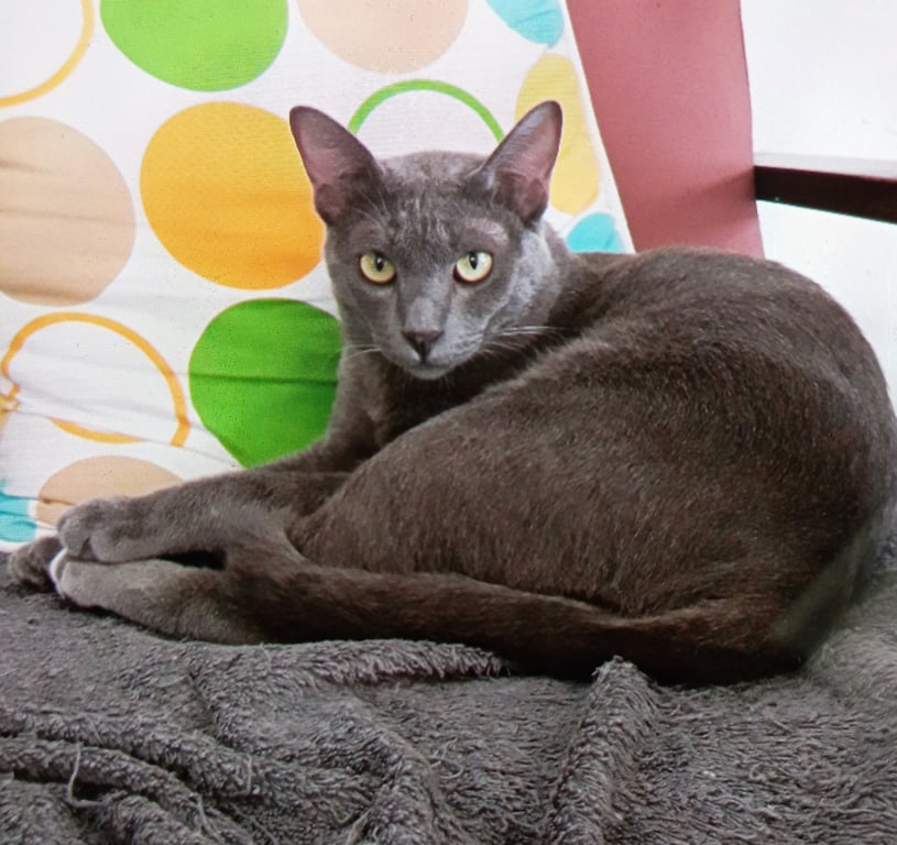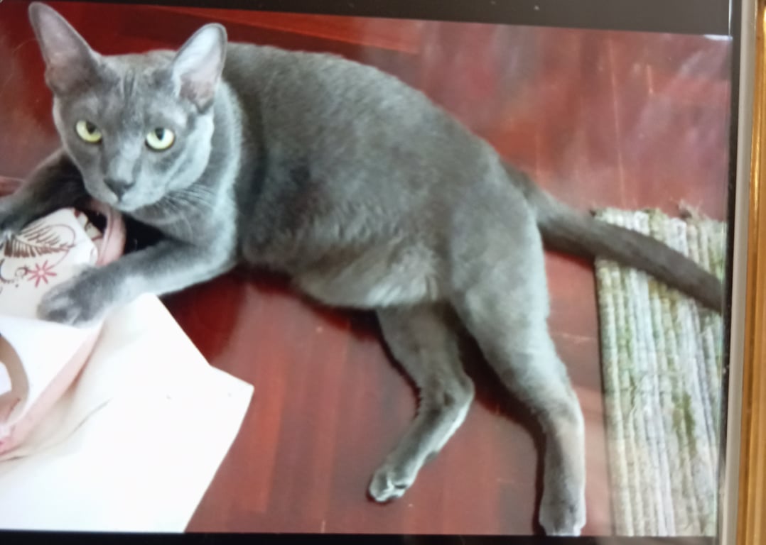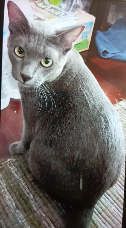 รอยตำหนิ: เขี้ยวบนซ้ายไม่มี ฟันกรามข้างใน บนล่าง ซ้ายขวา ไม่มีไม่ดุ จับอุ้มได้ , สีเทาทั้งตัว หนักประมาณ5กิโล หางยาว , ปลายเท้าซ้ายหลังมีแต้มขาว
