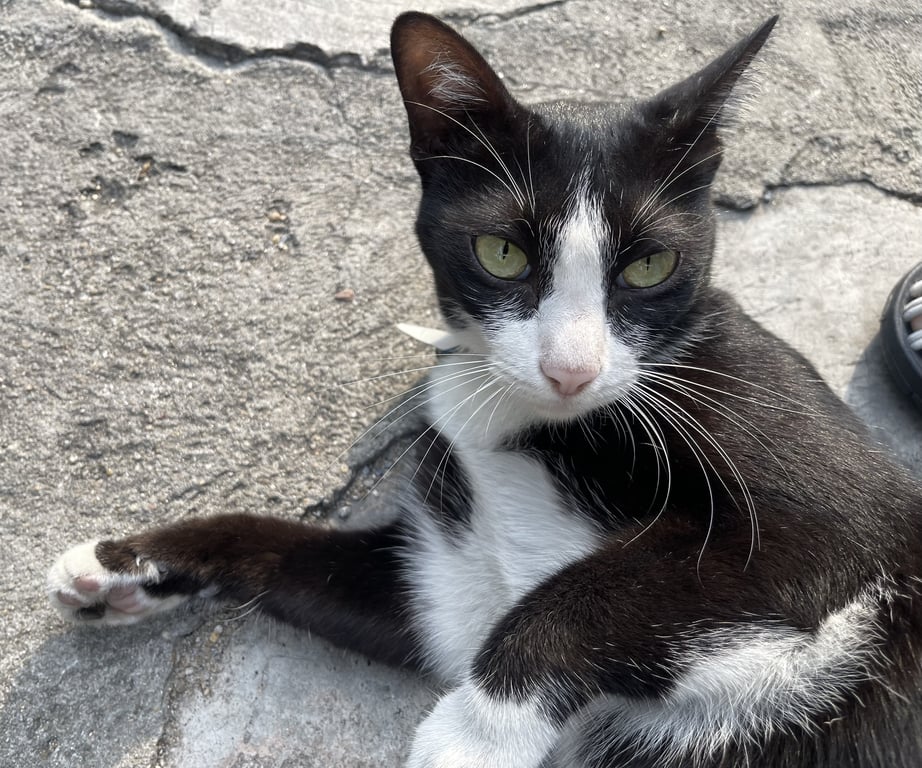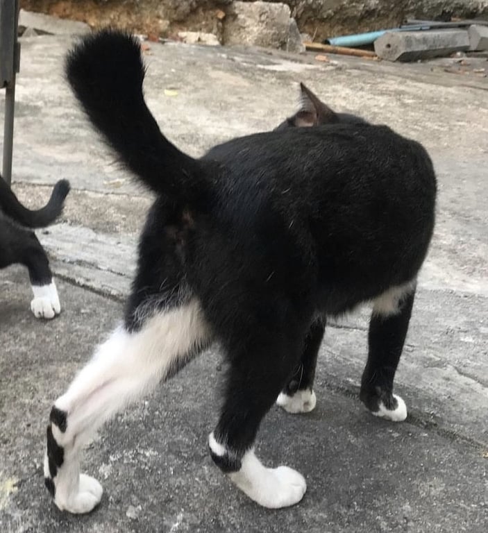 สี: ขาว ดำ เท้าเป็นสีขาว เหมือนใส่ถุงเท้า