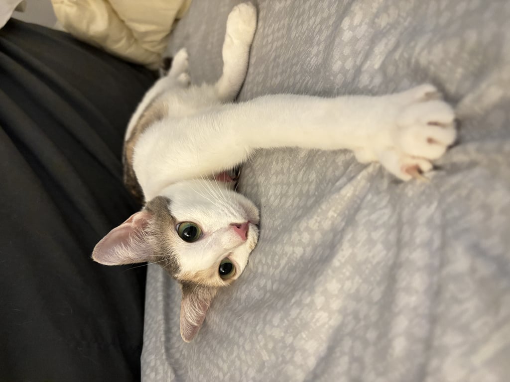 รอยตำหนิ: สีเทาเป็นลายสลิดขี้กลัว ติดเจ้าของ ขี้อ้อน