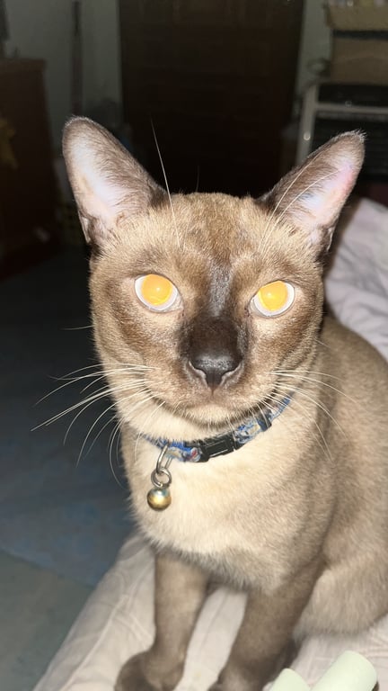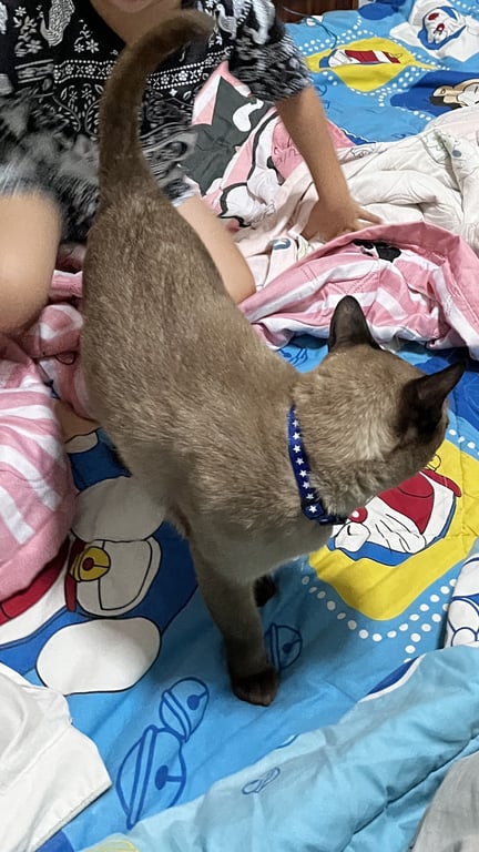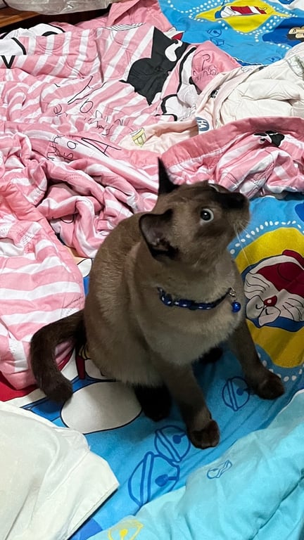 รอยตำหนิ: รอยขนแหว่งที่เท้าซ้าย ปลอกคอสีน้ำเงินขี้ตกใจ กลัวคนแปลกหน้ามาก