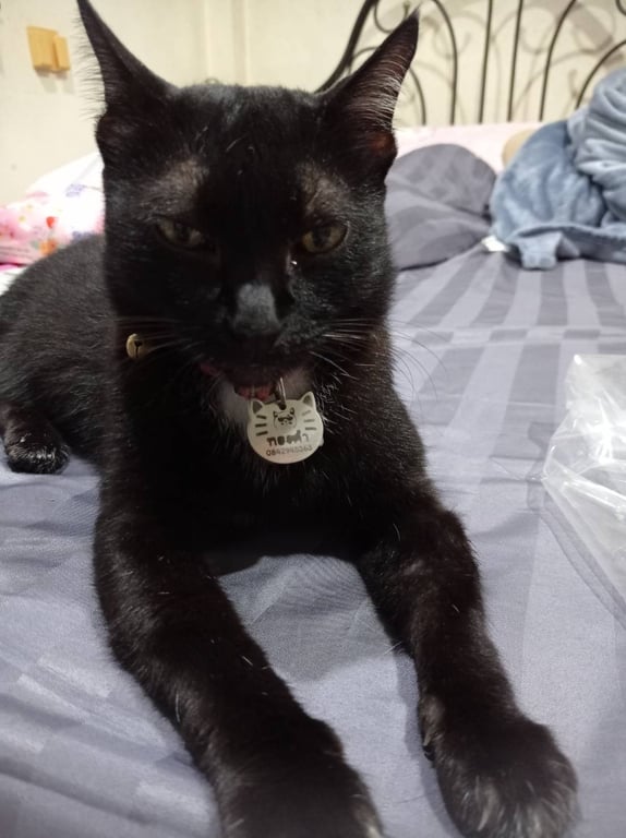 รอยตำหนิ: อกสีขาวและมีหางที่งอออกข้าวลำตัวไม่ชอบให้คนอุ้มเพราะกระดูกไม่แข็งแรง นิสัยดีถ้าคุ้นคน