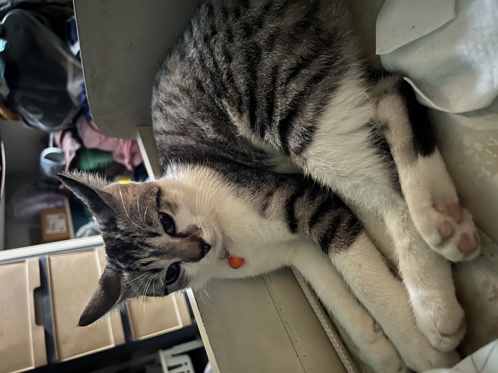 รอยตำหนิ: ปลายจมูกออกสีน้ำตาลอ่อนๆ หางตายาวถึงหู7-8เดือน