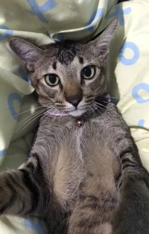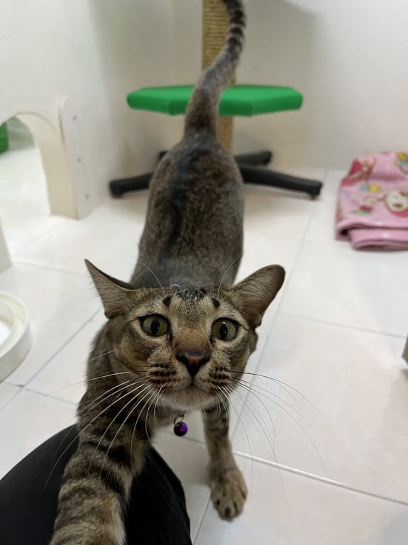 รอยตำหนิ: ขนแหว่งบริเวณสะโพก อยู่ในระหว่างการรักษาขี้กลัว ไม่ค่อยสุงสิงกับคน