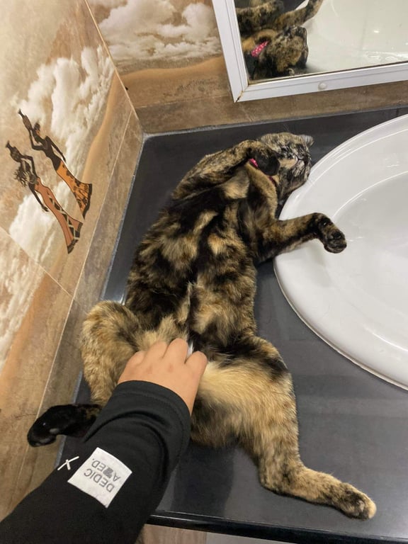 รอยตำหนิ: ใส่ปอกคอสีชมพูอ่อนลายเต่าทองขี้อ้อน แต่ขี้กลัว