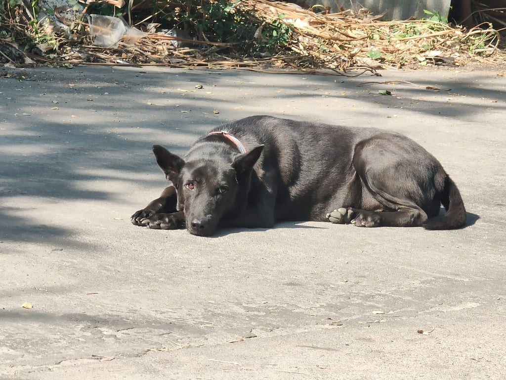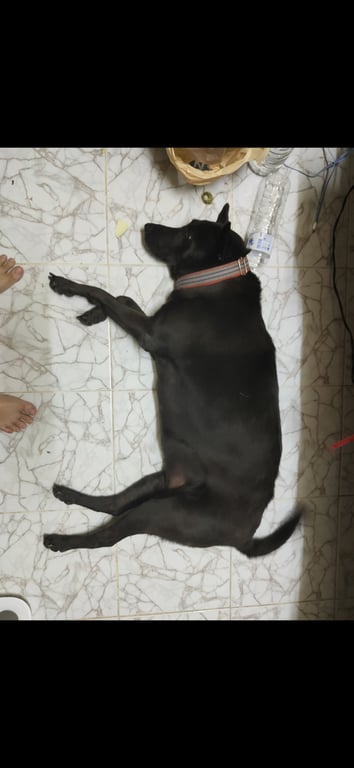 รอยตำหนิ: ลิ้นมีสีดำแต้ม//ปลอกคอสีแดงเรียบร้อย กลัวฟ้าร้องและฝน วันที่หายใส่ปลอกคอสีแดง