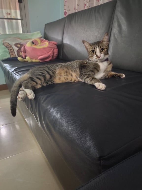 รอยตำหนิ: ใส่ถุงเท้าสองข้างไม่เท่ากัน มีรอยเปื้อนจมูกนิดเดียว มีจุดใกล้จมูกแถวๆปากกลัวคนแปลกหน้า ชอบกินทาโร่สีส้ม