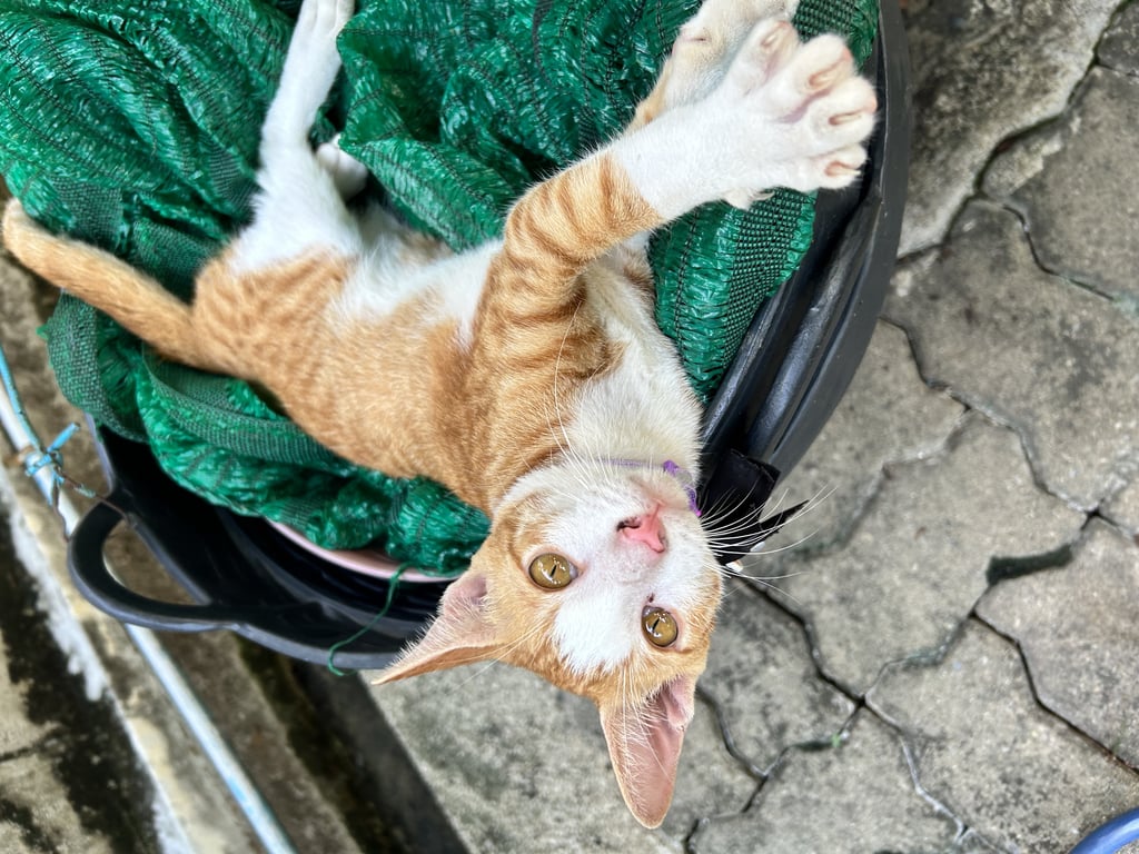 รอยตำหนิ: มีกระดิ่งใหญ่ ๆ ปลอกคอสีม่วง