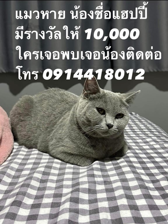 รอยตำหนิ: ปลอกคอสีฟ้า มีกระดิ่งหรือจี้รูปแมวที่คอ