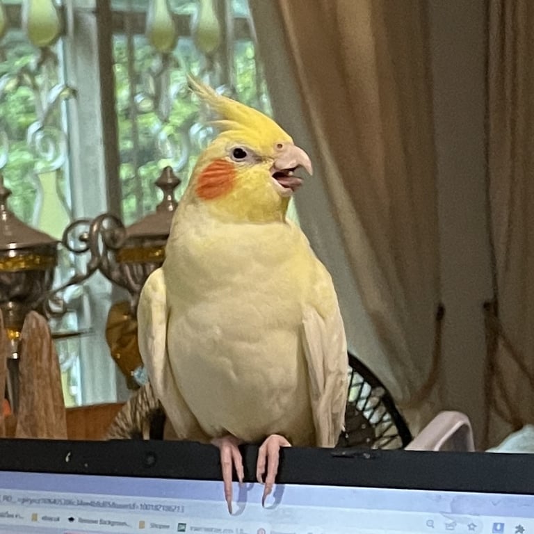 รอยตำหนิ: มีห่วงที่ขาไม่ชอบบิน ชอบเดิน ไต่ แทะ ชอบเอาหัวมาเกยที่มือเวลากดมือถือ/คอม