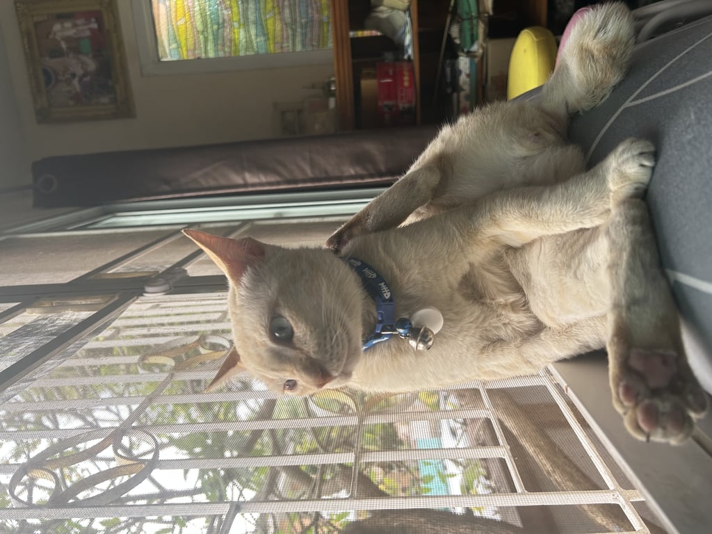 รอยตำหนิ: หางขดเป็นก้นหอยอายุประมาน9-10ปี วันที่หายใส่ปลอกคอสีฟ้า มีป้ายชื่อ ฟันเขี้ยวหัก