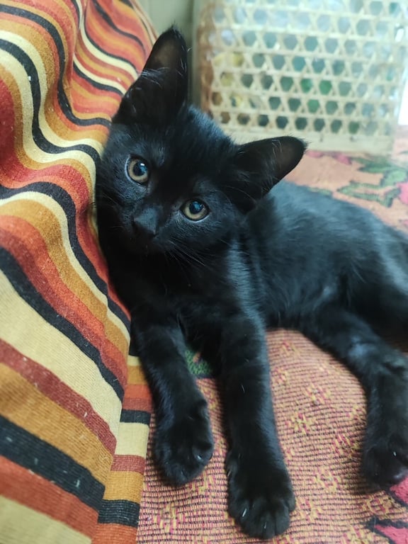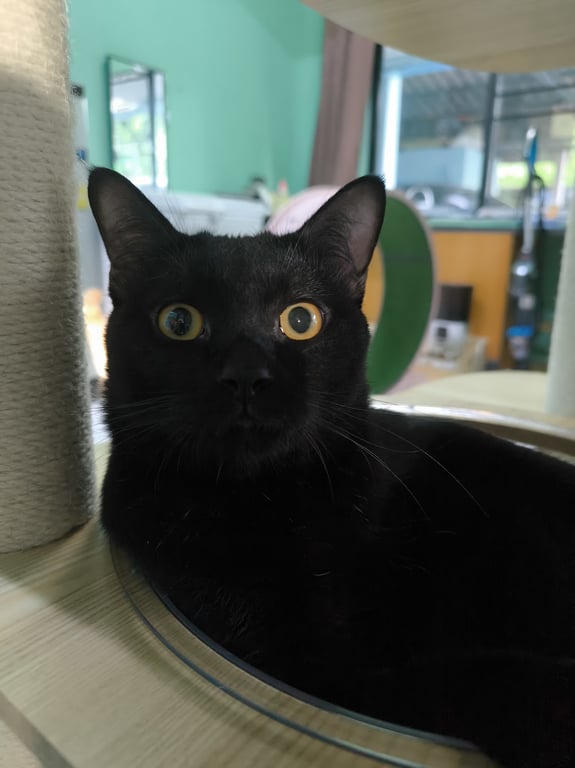 รอยตำหนิ: หัวล้านนิดหน่อยค่ะน้องเข้ากับคนง่าย ร้องเสียงดัง ซนตามประสาเด็กๆ แต่ที่พิเศษ น้องสีดำสนิท