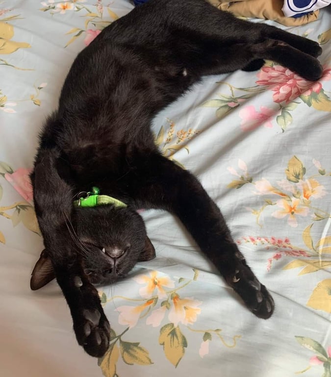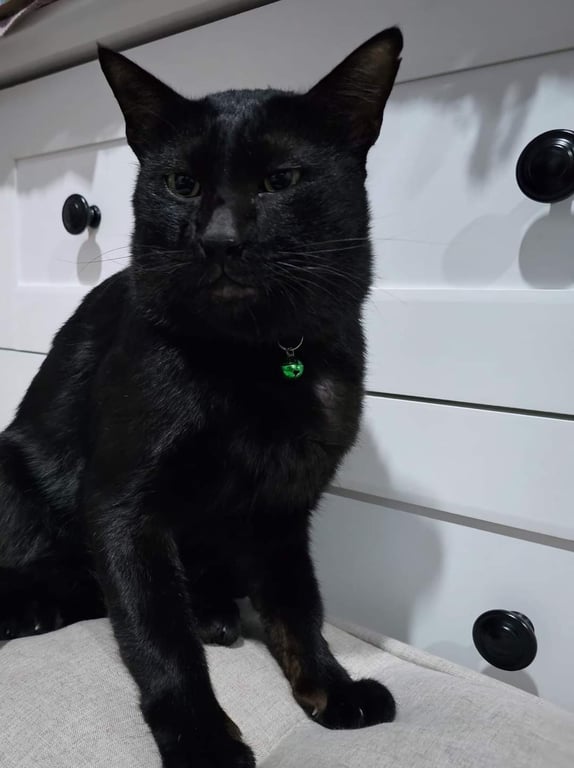 รอยตำหนิ: ปลอกคอเขียว ตรงอกมีกระดูกแหลมคลำได้ชัด หูซ้ายมีรอยแหว่งนิดๆ ร้องเสียงดังรู้จักชื่อขี้กลัว รู้จักชื่อ ชอบกินขนม ร้องเสียงดัง