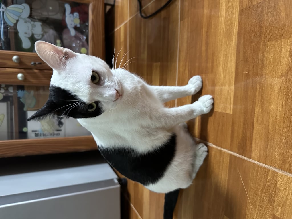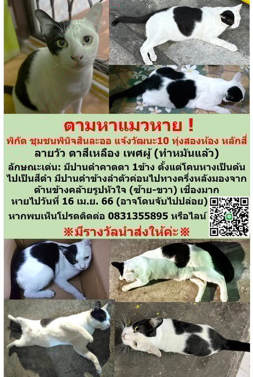 รอยตำหนิ: หางสีดำ มีปานสีดำมองจากด้านข้างคล้ายรูปหัวใจทั้งด้านซ้ายขวาค่อนข้างเชื่อง ติดคน ชอบนอนหงาย ชอบของกิน ล่อได้ด้วยขนมแมวเลีย