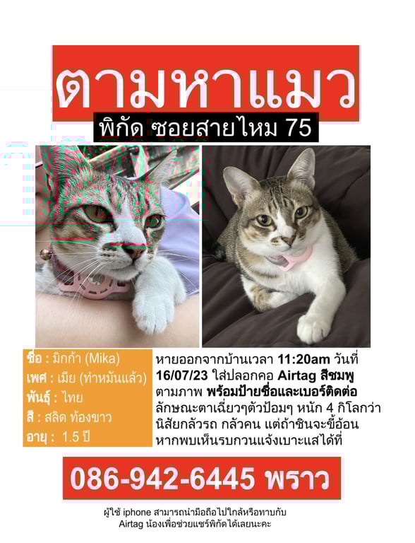 รอยตำหนิ: ตาคมๆ ตัวป้อมๆกลัวคน กลัวรถ แต่ชินแล้วจะขี้อ้อนมากๆ
