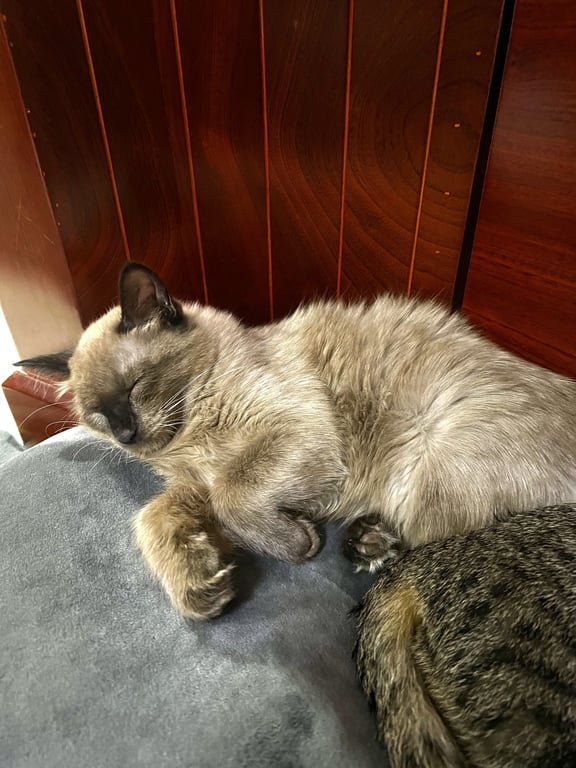 รอยตำหนิ: ขาด้านหลังงอไม่ได้ หางตกขี้อ้อน กลัวคนแปลกหน้า ชอบนอน